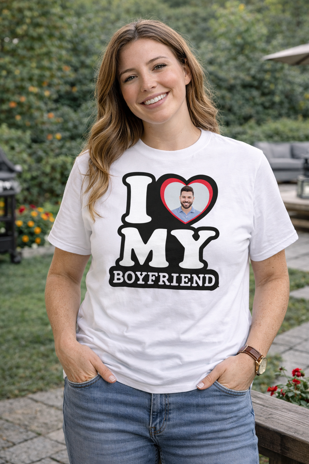 Personalizowana Koszulka I Love My Boyfriend jest idealnym prezentem dla Twojej ukochanej. Ta wyjątkowa koszulka zostanie wydrukowana z Twoim zdjęciem w sercu, aby uwiecznić Waszą miłość i oddać jej hołd. Dzięki temu Twoja dziewczyna będzie miał Cię zawsze przy sobie, gdziekolwiek pójdzie.