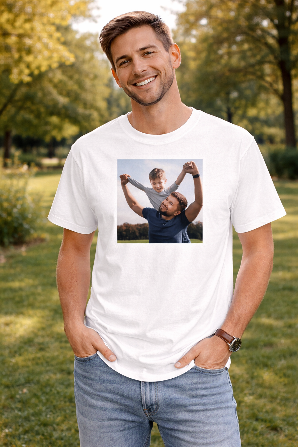 Wyraź swoją osobowość i unikalność poprzez noszenie koszulki z własnym zdjęciem. Stwórz niepowtarzalny look, który przyciągnie spojrzenia i wywoła uśmiech na twarzach innych. Przy użyciu własnego zdjęcia podkreśl i pokaż swój charakter lub dopasuj prezent tak aby wyrażał obdarowywaną przez Ciebie osobę. Idealnie sprawdzi się jako koszulka dla Babci i Dziadka poprzez dodanie zdjęcia rodziny lub wnuków będzie wyjątkowym prezentem, który pozwoli się cieszyć Twoim seniorom koszulką z rodzinnym akcentem.