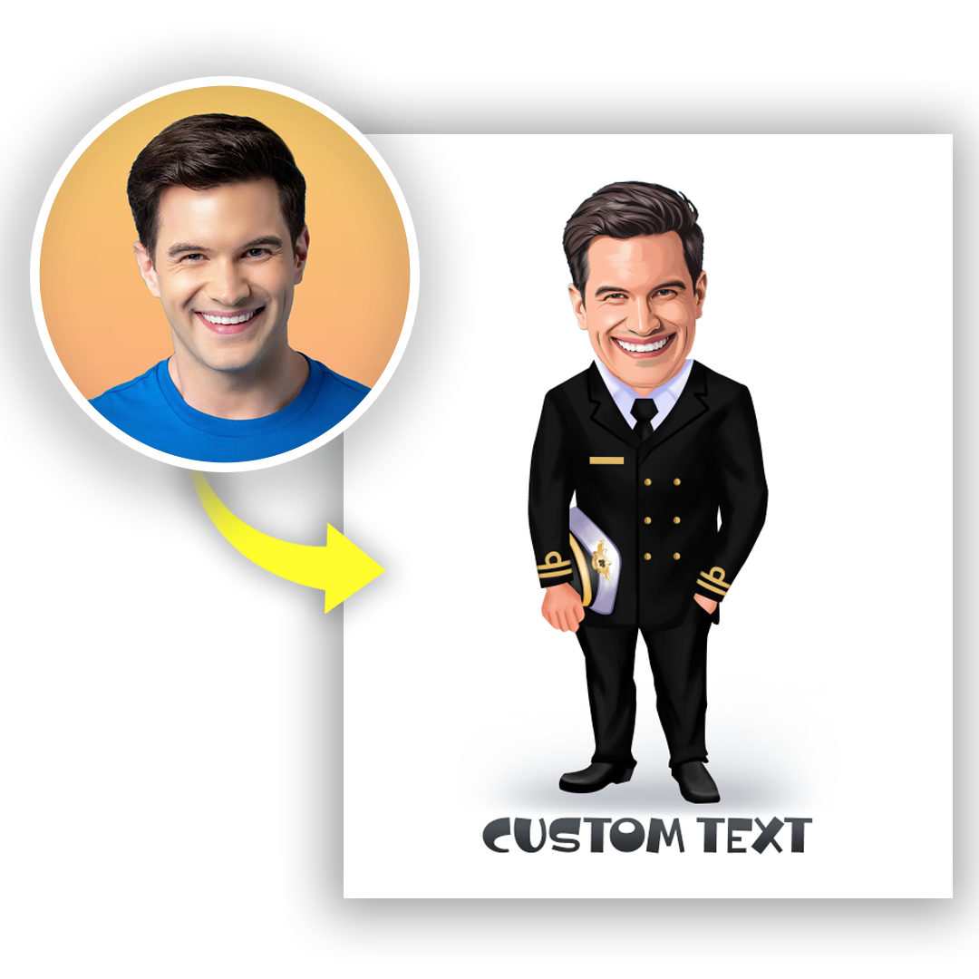 Szukasz oryginalnego prezentu, który połączy szacunek do dowodzenia z odrobiną humoru? Nasz Personalizowany Obraz na płótnie "Karykatura Kapitana / Skippera" to doskonały wybór! Wgraj zdjęcie, a my stworzymy zabawną karykaturę, przedstawiającą Twoją twarz na ciele kapitana lub skippera – z eleganckim mundurem, kapeluszem i nieodłączną sterówką w ręku. To wyjątkowy sposób na uhonorowanie roli lidera w stylowy i humorystyczny sposób.