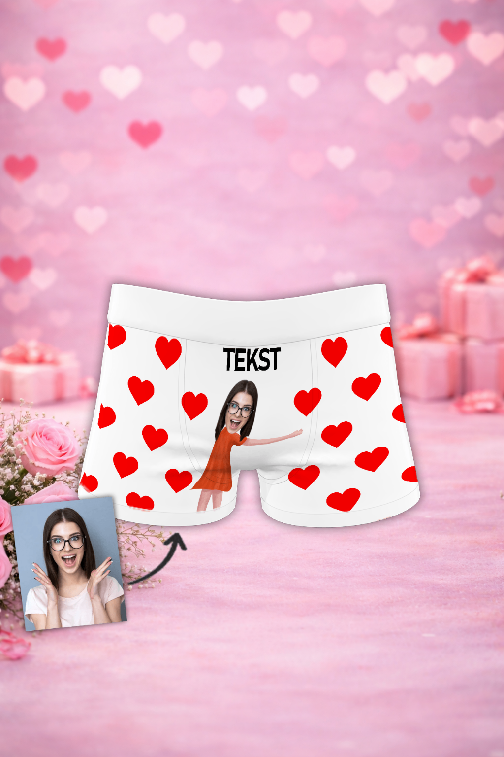 Twarz obdarowanej osoby jest precyzyjnie wycinana i umieszczana na bokserkach, co sprawia, że staje się ona centrum uwagi. Ten prezent doskonale nadaje się na różne okazje, takie jak walentynki, urodziny, dzień chłopaka, lub po prostu jako niezapomniana pamiątka.