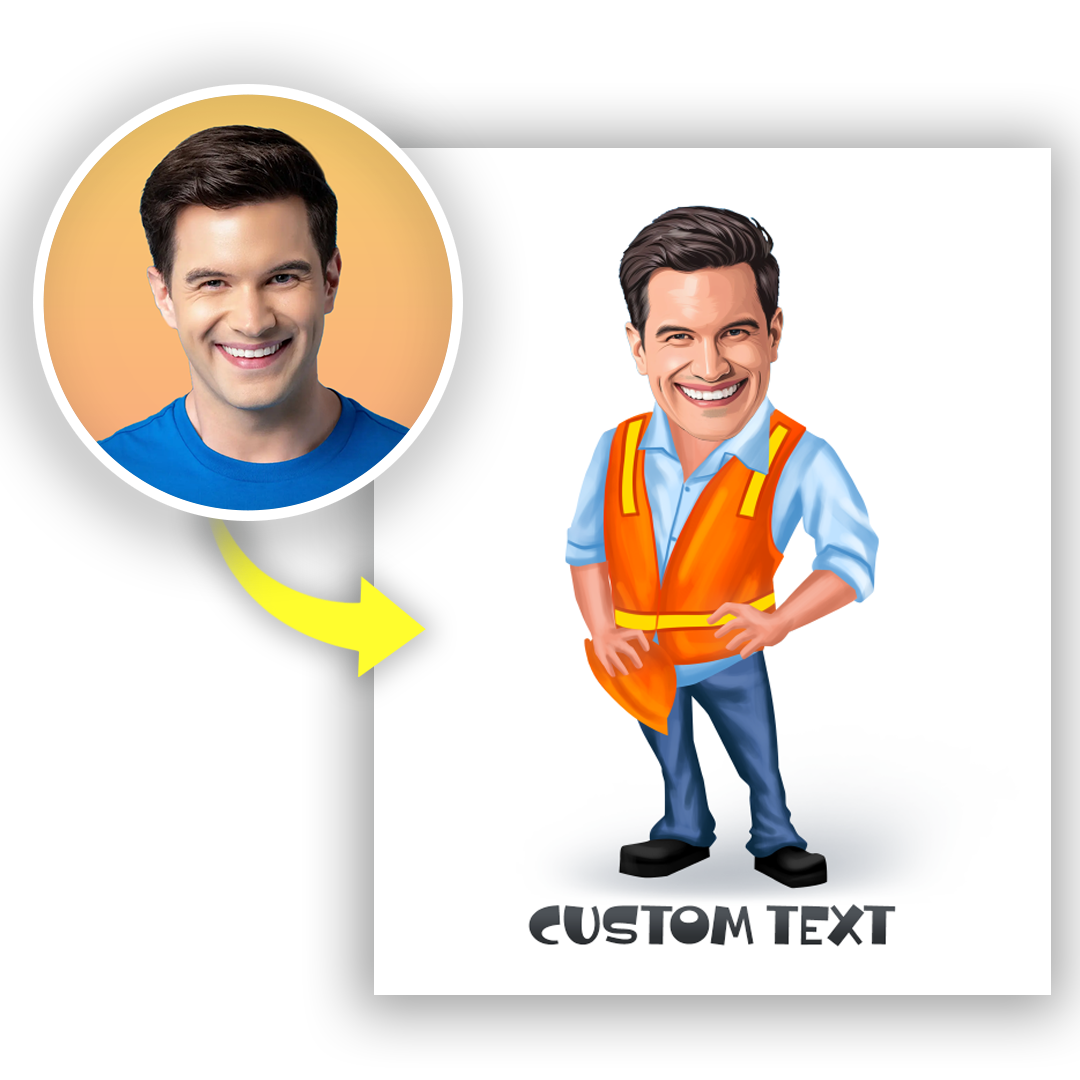 - Personalizacja: Przekształcamy Twoje zdjęcie w karykaturę budowlańca, tworząc unikalny obraz, który doskonale oddaje zarówno ciężką pracę, jak i charakter obdarowanej osoby.
