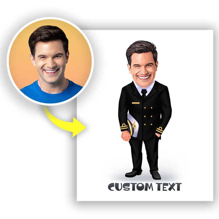 Szukasz oryginalnego prezentu, który połączy szacunek do dowodzenia z odrobiną humoru? Nasz Personalizowany Obraz na płótnie "Karykatura Kapitana / Skippera" to doskonały wybór! Wgraj zdjęcie, a my stworzymy zabawną karykaturę, przedstawiającą Twoją twarz na ciele kapitana lub skippera – z eleganckim mundurem, kapeluszem i nieodłączną sterówką w ręku. To wyjątkowy sposób na uhonorowanie roli lidera w stylowy i humorystyczny sposób.