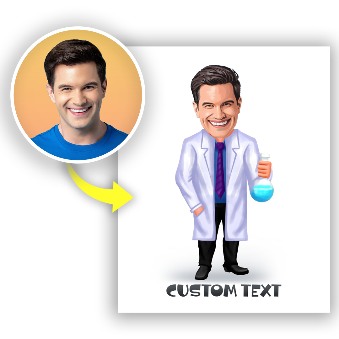 Szukasz oryginalnego prezentu dla osoby zafascynowanej światem nauki? Nasz Personalizowany Obraz na płótnie "Karykatura Naukowca" to idealny wybór! Wgraj zdjęcie, a my stworzymy humorystyczną karykaturę, przedstawiającą Twoją twarz na ciele naukowca – w białym fartuchu, z okularami na nosie, probówkami, książkami i innymi naukowymi akcesoriami w tle. To wyjątkowy sposób na uhonorowanie pasji do nauki w zabawny i kreatywny sposób.