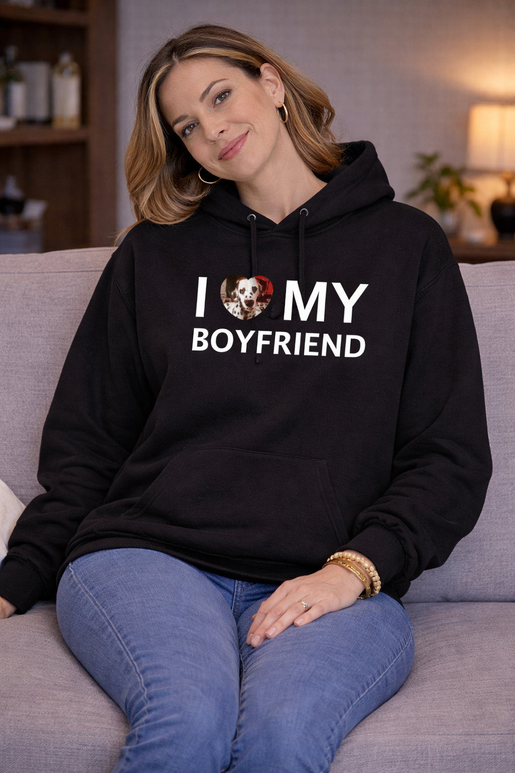 Personalizowana Bluza I Love My Boyfriend Bold z Twoim zdjęciem na prezent