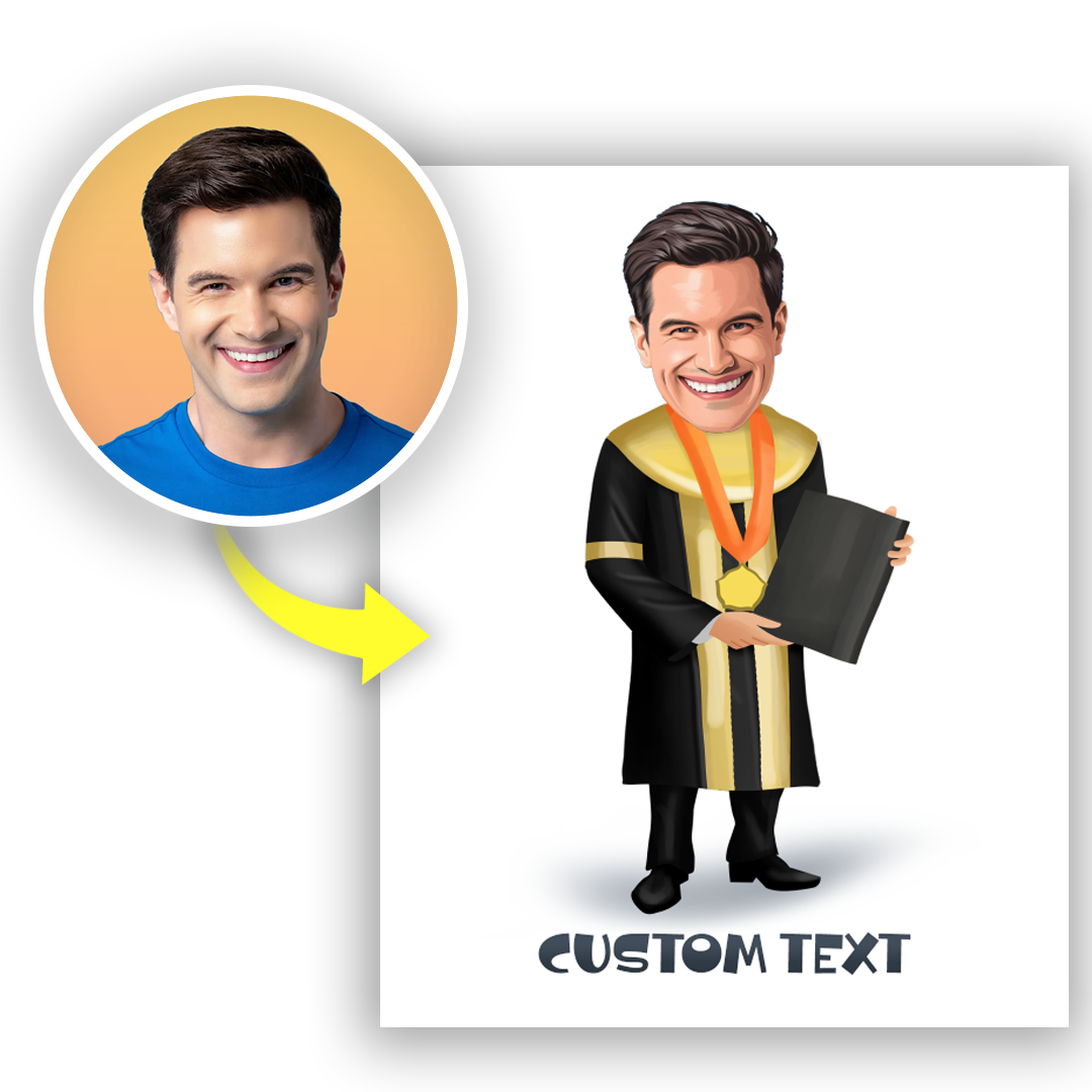 Szukasz wyjątkowego prezentu, który uczci osiągnięcia świeżo upieczonego absolwenta? Nasz Personalizowany Obraz na płótnie "Karykatura Absolwenta" to idealny wybór! Wgraj zdjęcie, a my stworzymy zabawną karykaturę, przedstawiającą Twoją twarz w roli dumnie ubranego absolwenta – w akademickiej todze i birecie, z dyplomem w ręku i otoczonego symbolami nauki i edukacji. To kreatywny sposób na świętowanie sukcesów edukacyjnych w humorystyczny sposób.