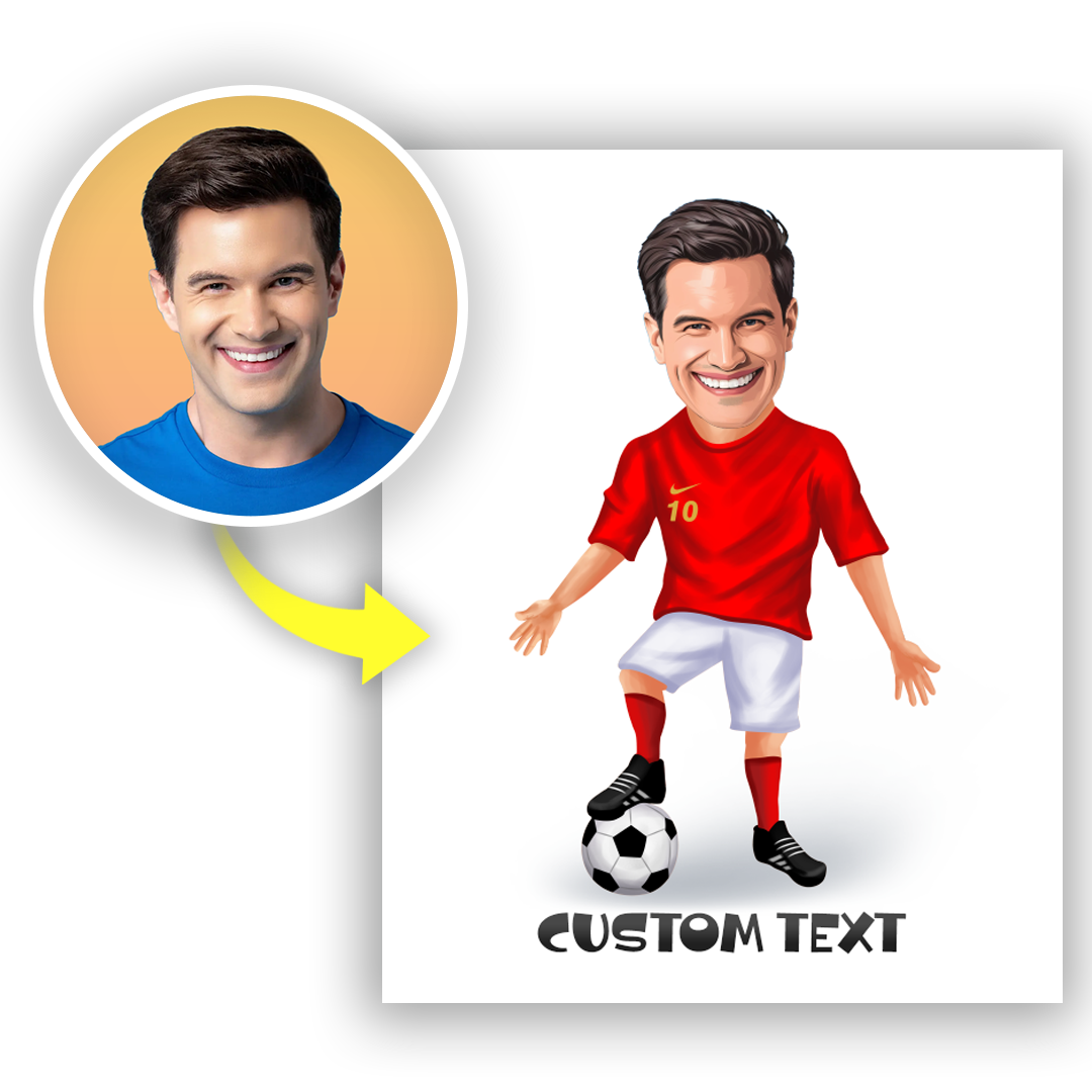 - Personalizacja: Twoje zdjęcie zamienia się w karykaturę piłkarza, tworząc unikalny obraz, który doskonale oddaje entuzjazm i dynamikę gry w piłkę nożną.