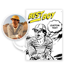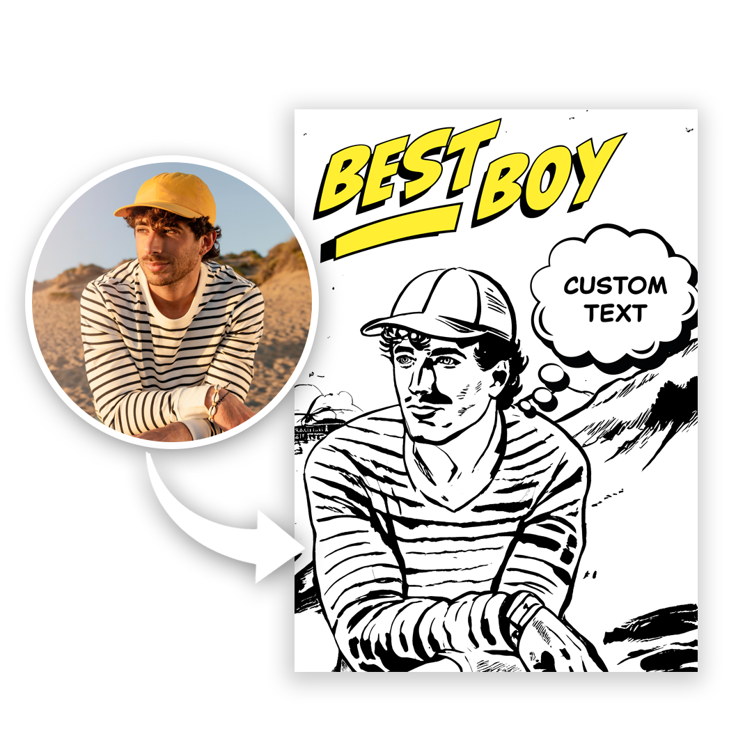 - Personalizacja: Twoje zdjęcie zamienimy w stylową grafikę komiksową z hasłem "Best Boy", co sprawia, że prezent jest naprawdę wyjątkowy.