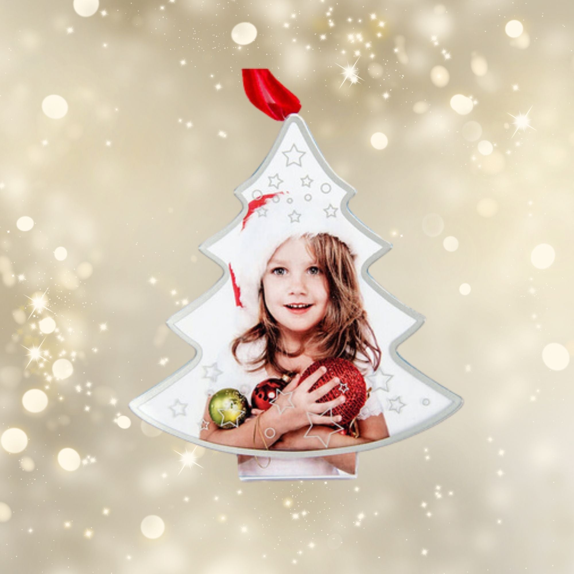 Chcesz, aby na Twojej choince pojawiła się… mała choinka z ulubionym zdjęciem? Bombka w kształcie choinki na zdjęcie to urocza ozdoba, która pozwoli Ci wyeksponować najpiękniejsze świąteczne wspomnienia. Ramka w formie choinki, delikatnie ozdobiona gwiazdkami i zawieszona na czerwonej wstążce, idealnie komponuje się z innymi dekoracjami na drzewku.