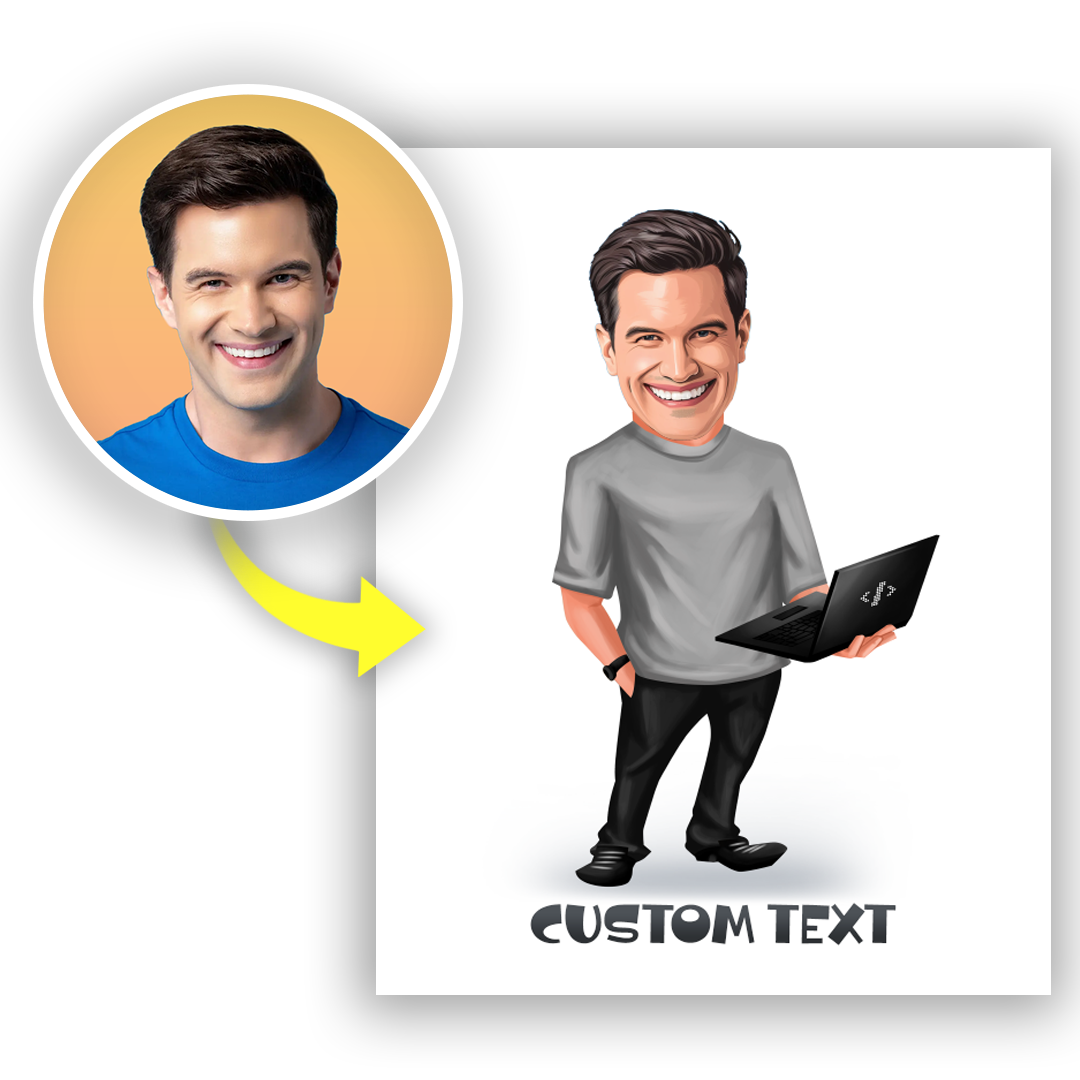 - Personalizacja: Zamieniamy Twoje zdjęcie w karykaturę programisty, tworząc jedyny w swoim rodzaju obraz, który doskonale oddaje charakter pracy i pasji do kodowania.