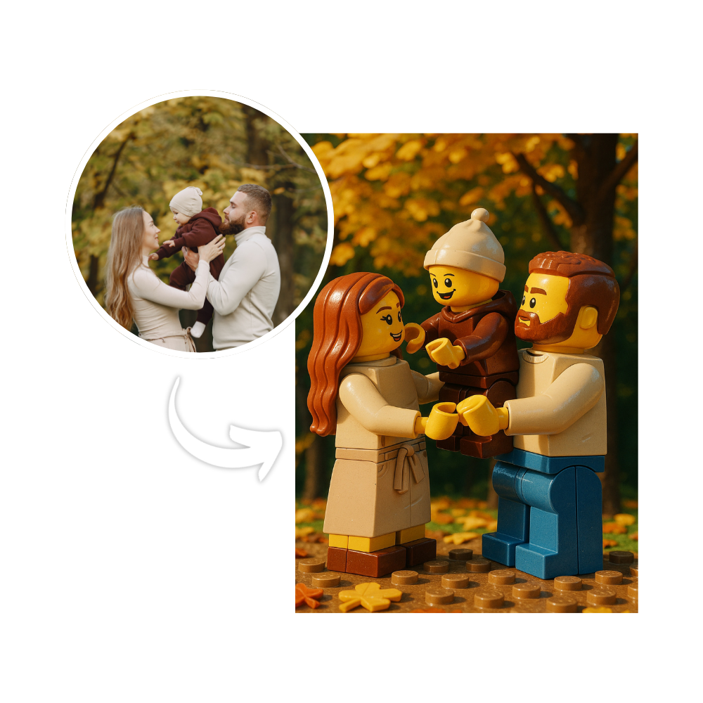 Personalizacja Na podstawie Twojego zdjęcia tworzymy unikalny wizerunek w stylu LEGO – z charakterystycznymi cechami twarzy, fryzurą i ubiorem dopasowanym do pasji (np. superbohater, gamer, podróżnik, sportowiec i wiele innych).
